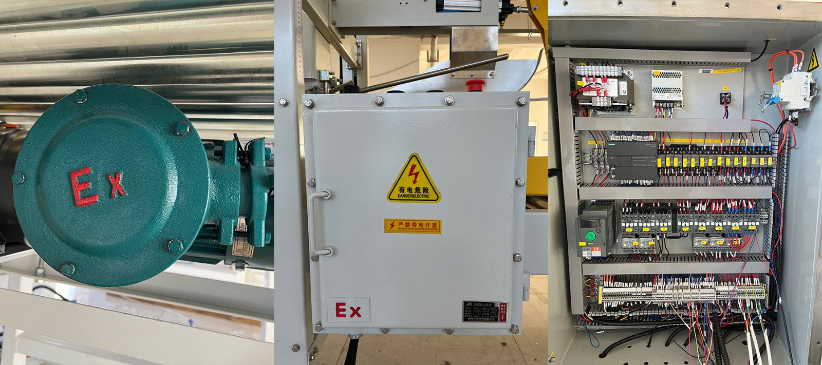 目前艾讯的主营产品开封箱机、打包机、缠绕机以及输送机均可制作防爆机型。
