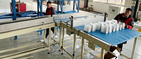 该项目主要由保鲜盒整理、套膜收缩、自动装箱、自动封箱、金属检测、自动码垛、自动输送等7大部分组合而成。整线为无人化操作,包装产能超过10万件保鲜盒/小时。