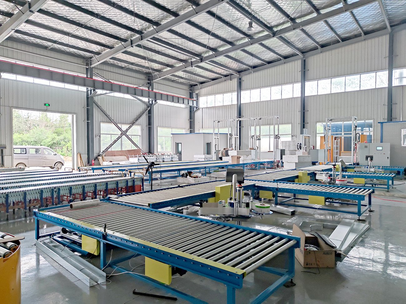 该条线体主要实现对聚氨酯泡沫板实现整理、计数、贴标、打码、翻转、码垛、输送以及捆扎作业,整线由PLC控制,实现无人化操作,也可以接驳在线缠绕包装以及在线覆顶膜设备,实现对物料的全方位包装。