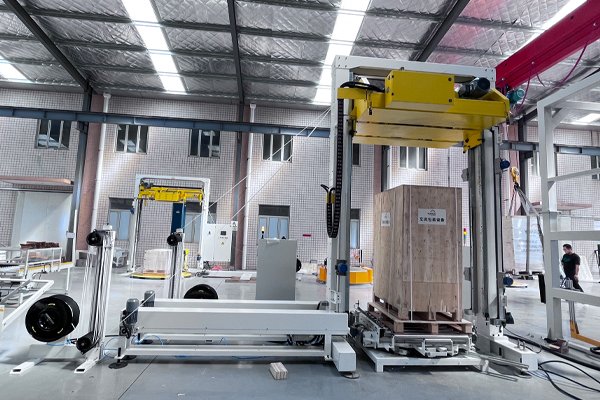 机通过专家验收,并得到验收专家一致好评。本机在国内是小众产品,但捆扎效率极高,可在一次下压瞬间捆扎2道,配电动转盘,可在较短时间内完成重型托盘的井字型捆扎工艺。