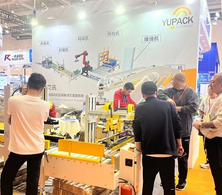 青岛艾讯于本次展会上展出了涵盖纸箱包装相关的,开封箱机、捆扎机以及托盘包装相关的码垛机、托盘输送机等两个大类5种小类的自动化包装设备,吸引了大批中内外参展商驻足观看。