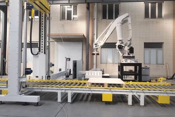 该线体同时配备了自动供栈机,实现托盘的自动供给,以及托盘的在线贴标,实现物料的有序区分。