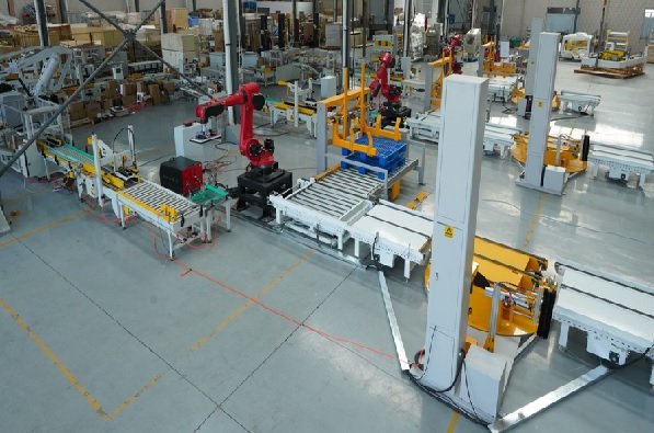 玩具产品开封箱码垛包装线主要由开箱机、封箱机、供栈机、码垛机器人、在线缠绕机以及输送机等设备组成,玩具行业以产品轻、体积小为主要特点,因此码垛机器人的选择可以以轻负载同时配以海绵吸盘抓手为主,既可以保证产能同时又能最大限度的控制成本,是目前玩具行业比较主流的包装方式。