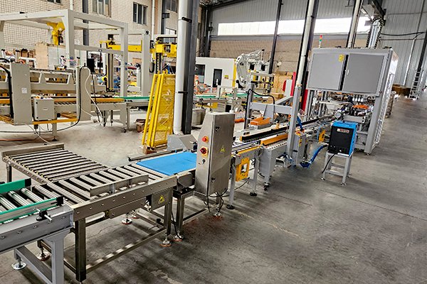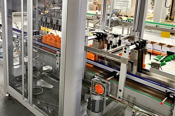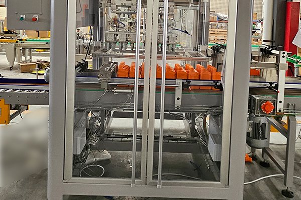 桶装箱是装箱案例中非常典型的的产品,针对不同桶的类型以及瓶口直径的大小、效率的不同,装箱机都会有所变化。该套机油桶装箱包装线是由高速热熔胶开箱机、平移式装箱机、热熔胶封箱机、自动称重剔除机组合而成。
