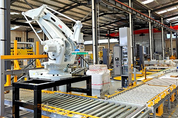 装箱完成之后可配合码垛机器人来实现纸箱的码垛工序,针对于码垛部分,可以选择工业机器人、协作机器人以及单立柱码垛机均可,具体要根据用户的产品重量、码垛效率、码垛高度等综合考量。
