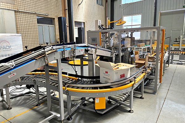 纸盒装箱码垛包装线是包装行业非常典型的线体,但由于装箱以及码垛的方式不同,该线体又会有很多种不同的布局方式。针对纸盒类产品的装箱,常用的装箱方式为翻转侧推装箱和平移式装箱,当盒子的上盖为未完全封闭固定的情况下,就需要用翻转侧推装箱方式,该方式的最大特点是机器可自动将纸盒整理成需要的装箱形式,排、列、层都会提前堆叠好,一次性推进纸箱,有效解决纸盒散落以及装箱无序的问题。